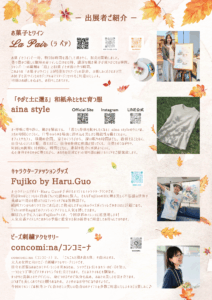 今回も素敵な出店者さま方にお集り頂きました。